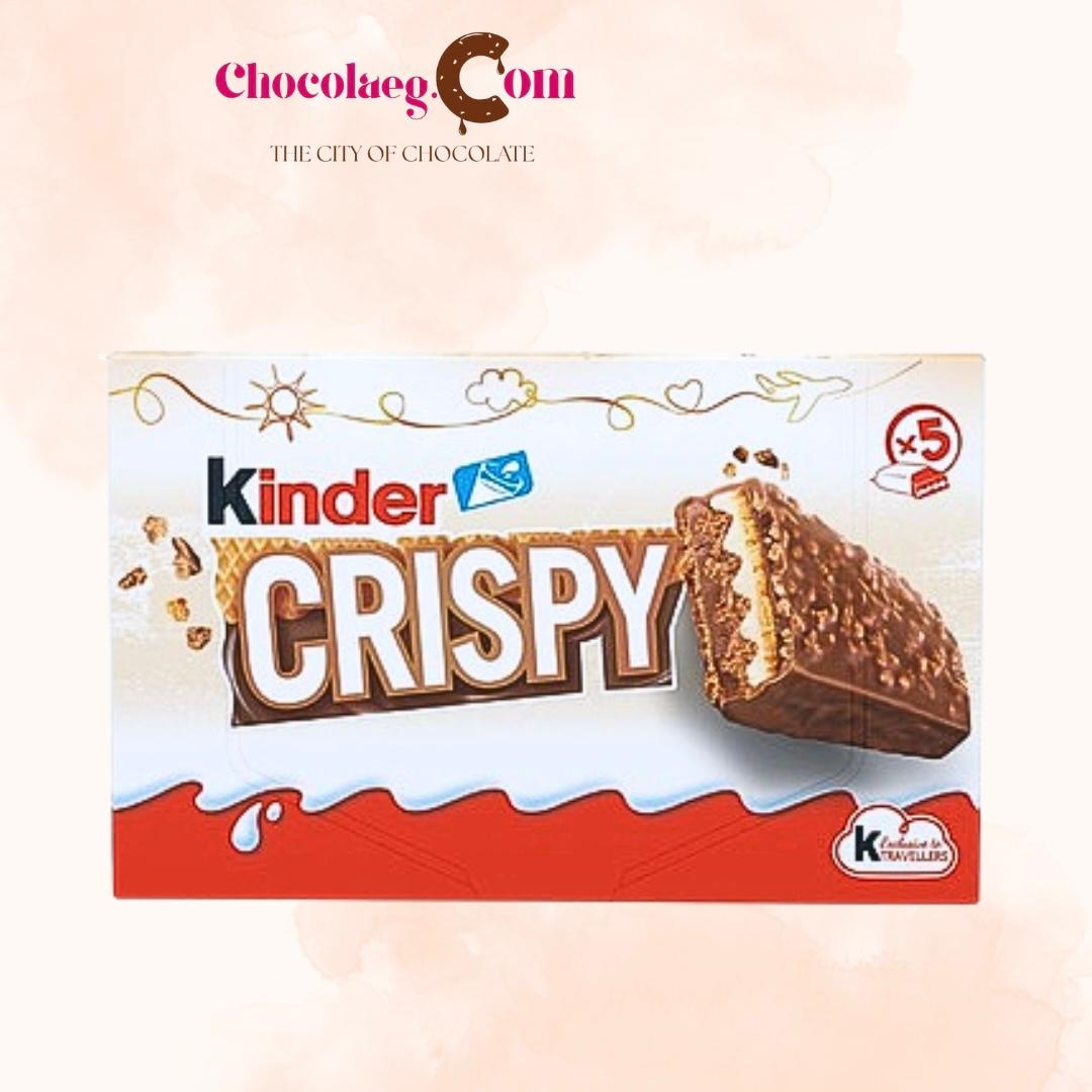 Kinder Crispy 170 gmproduct consists of five individually wrapped chocolate bars featuring crispy wafer layers and a creamy Kinder milk filling, all coated in milk chocolate.