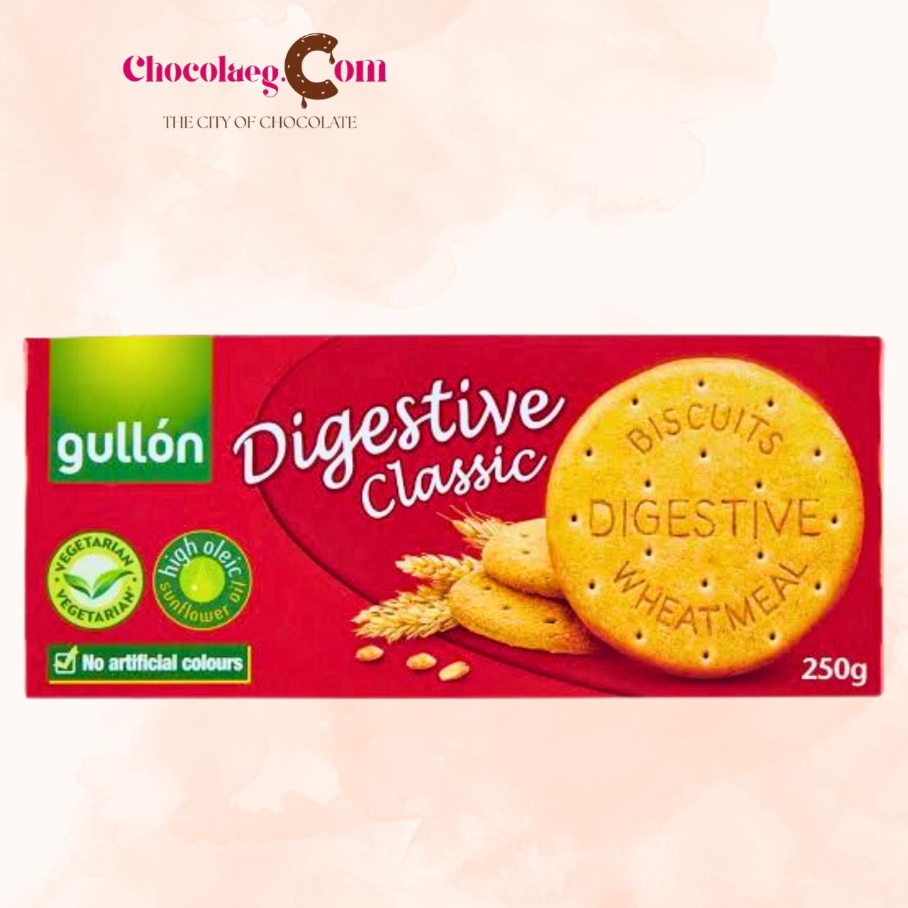The Gullon Digestive Classic 250g is a high-fiber, whole wheat biscuit known for its crunchy texture and traditional digestive taste. Unlike the “Zero” sugar-free line, the Classic version contains sugar and glucose syrup, making it a standard energy-rich snack suitable for daily consumption with tea or coffee