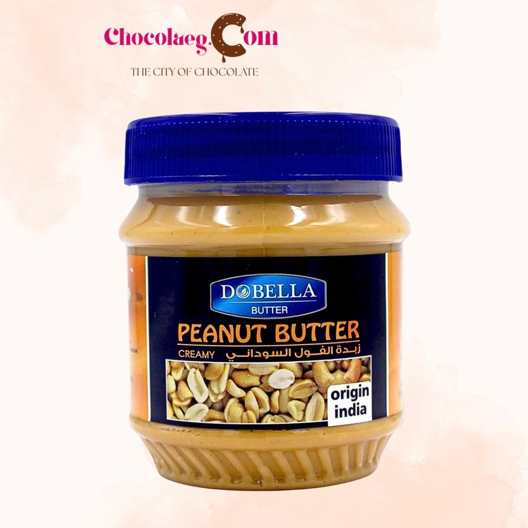 Dobella Creamy Peanut Butter is a spread made from roasted peanuts, sugar, salt, and fully hydrogenated soybean oil