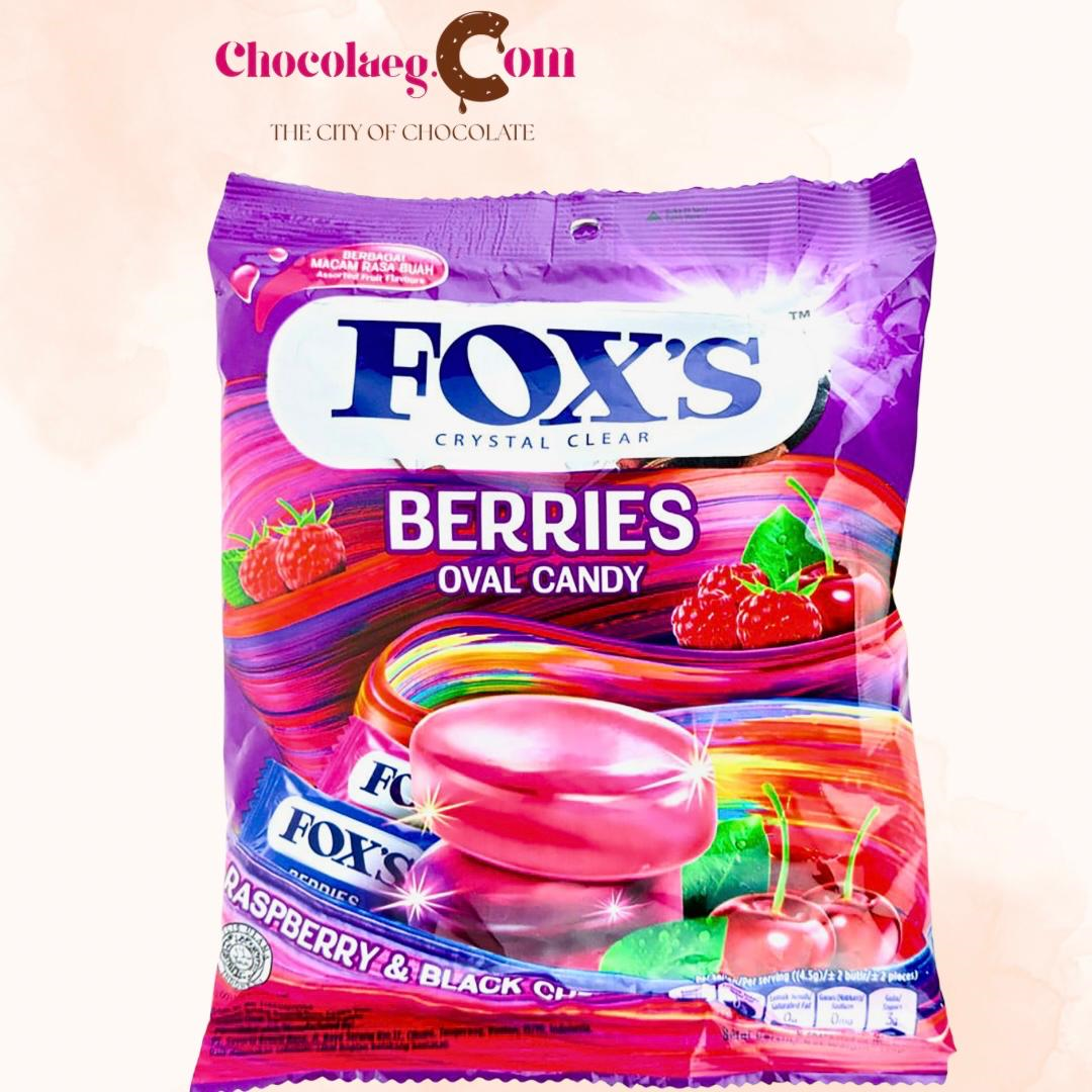 pack of Fox’s Crystal Clear Berries Oval Candy, which are a type of hard candy known for their fruity flavors and smooth texture.