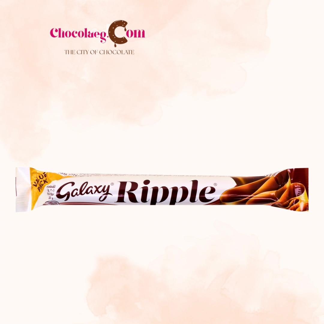 The Galaxy Ripple 30g bar is a smooth and creamy milk chocolate treat featuring a unique “rippled” or folded center that provides a light, flaky texture.Â