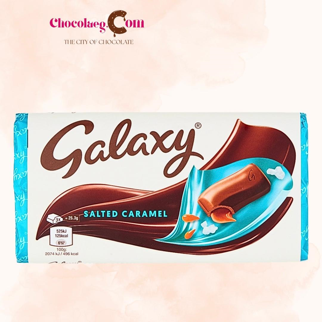 Galaxy Salted Caramel 100g is the classic Milk Chocolate with the signature smooth Galaxy texture paired with a liquid salted caramel filling.