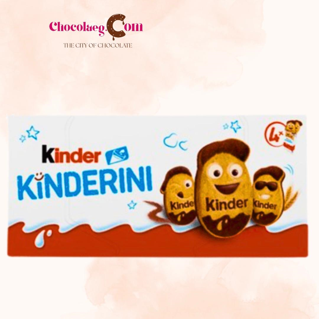 • Description : Kinder Kinderini are layered shortbread cookies made with plain and cocoa dough, decorated with small creamy details using the signature Kinder milk and cocoa flavor. Each biscuit has one of 18 different facial expressions.
