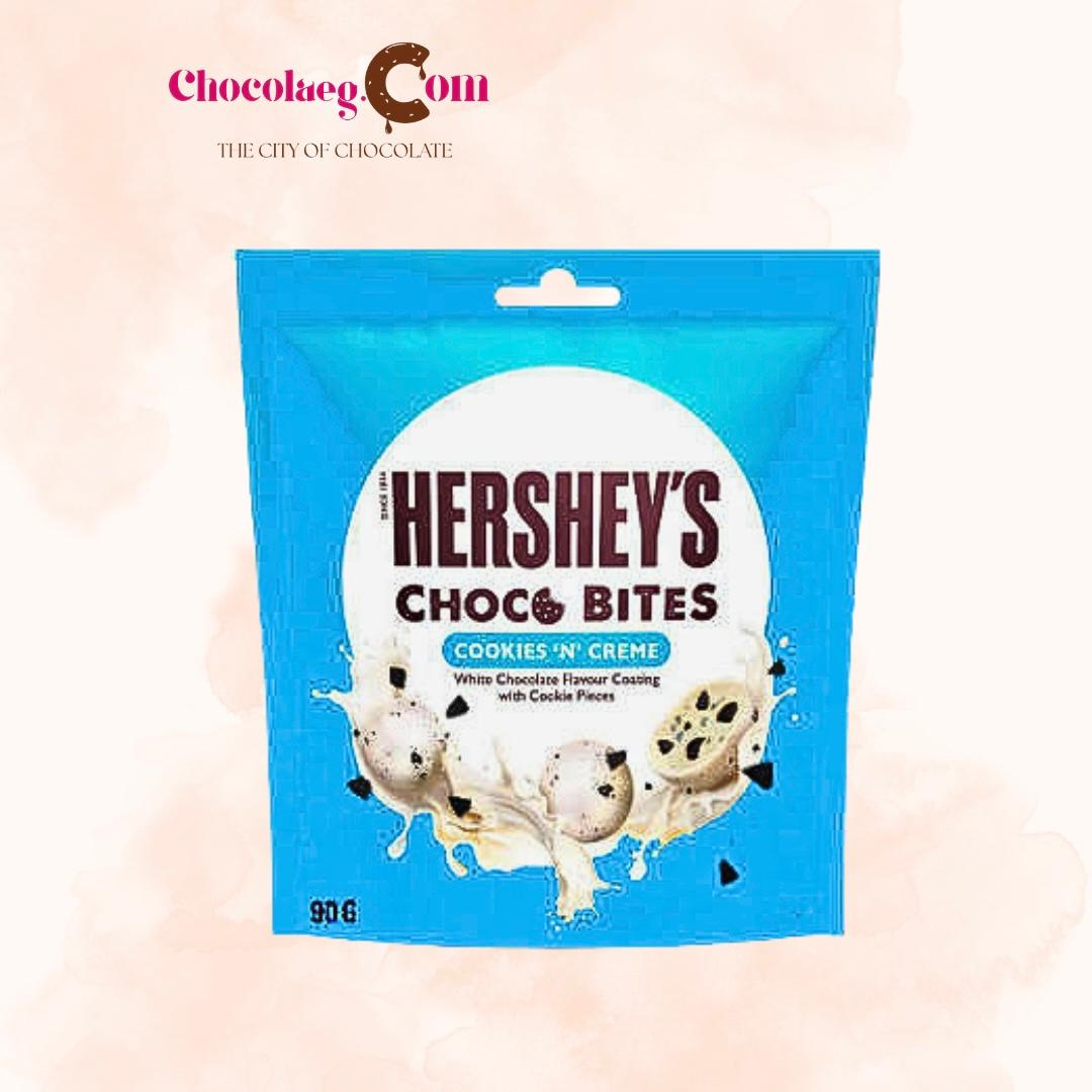 Hershey’s Choco Bites Cookies ‘N’ Creme 90g are small, ball-shaped treats that combine smooth white cream with crunchy chocolate cookie pieces.