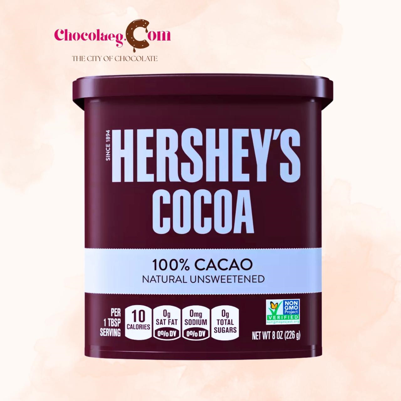Hershey’s Natural Unsweetened Cocoa (230g) is a standard pantry staple used for baking and making beverages.