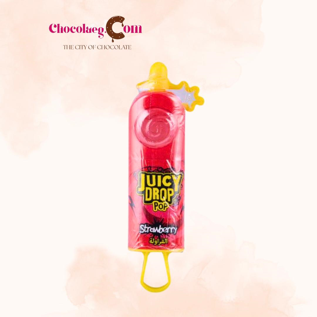 The Bazooka Juicy Drop Pop Strawberry 26g is a unique interactive candy that combines a sweet, hard strawberry-flavored lollipop with an attached dispenser of sour liquid gel, allowing you to customize the mix of sweet and sour in every bite.