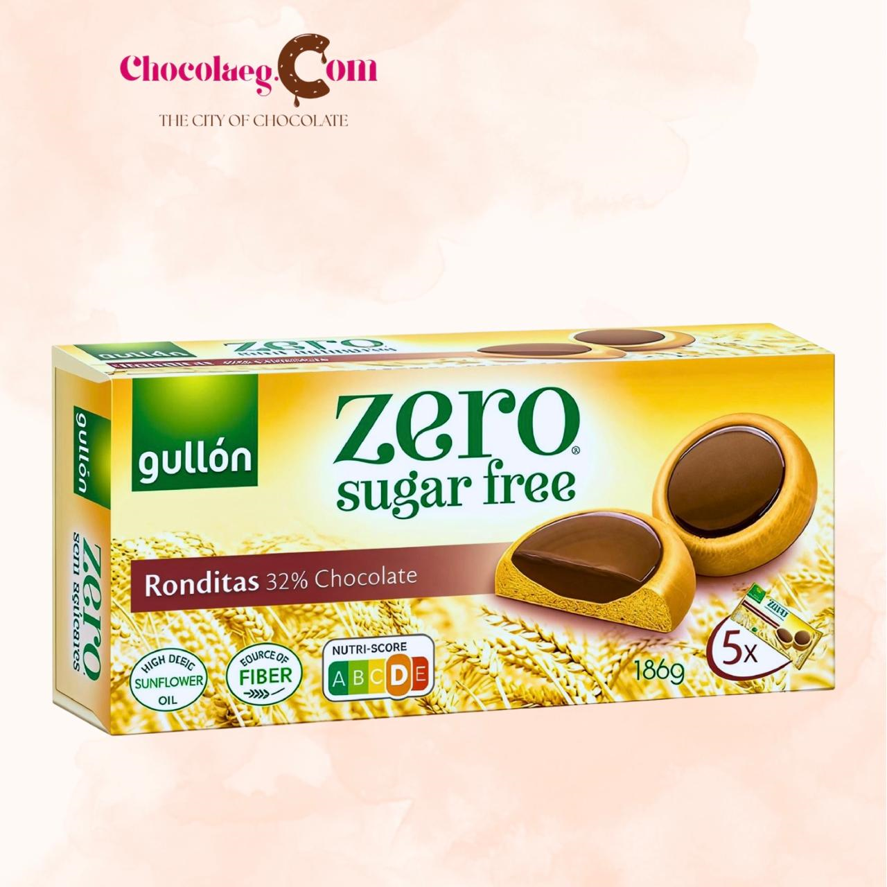 The Gullon Zero Sugar Ronditas (186g) are sugar-free biscuit tartlets topped with 32% unsweetened dark chocolate. They are specifically designed for those monitoring sugar intake, utilizing maltitol as a sweetener and high oleic sunflower oil for a healthier fat profile.