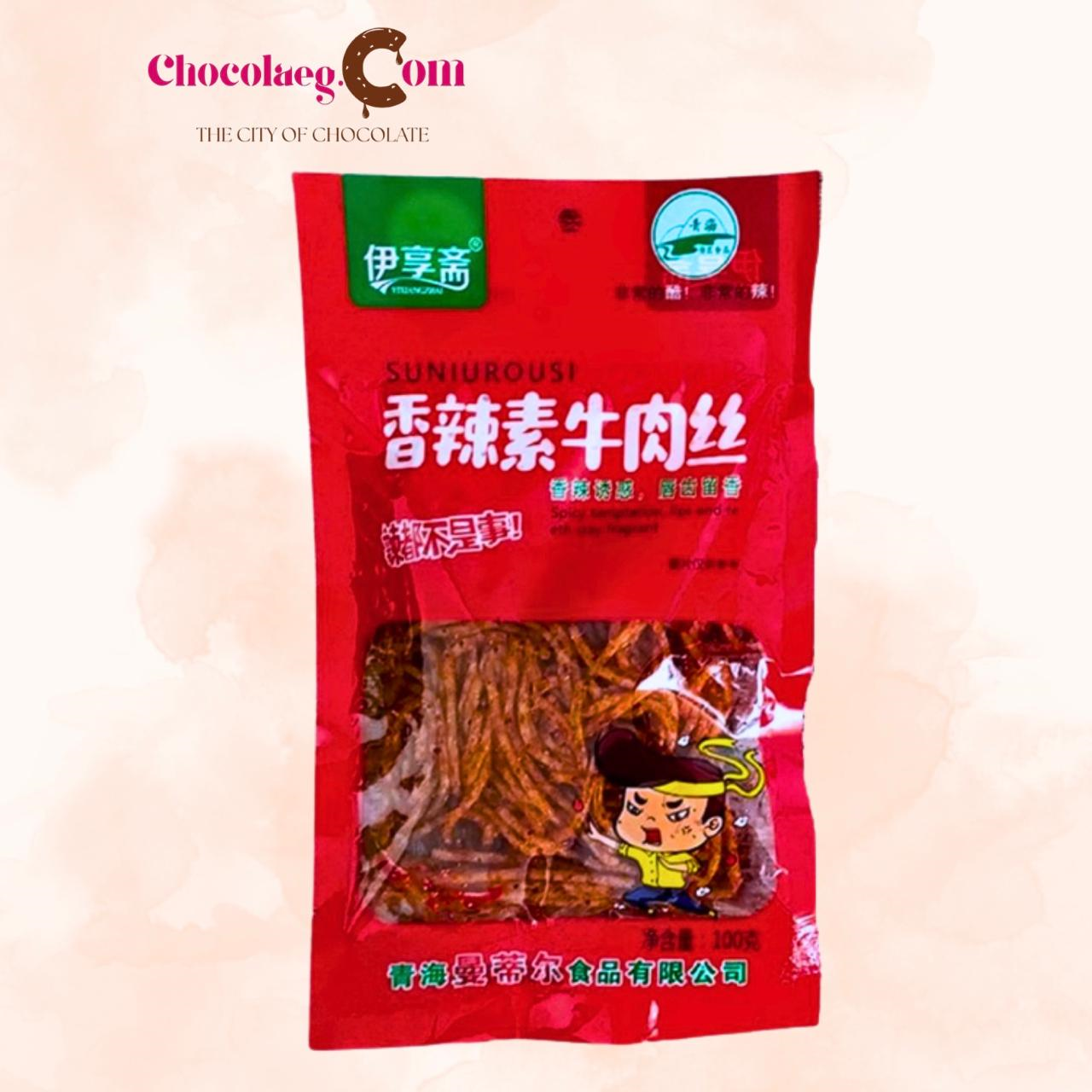 Description: A plant-based spicy snack that mimics the texture and flavor of shredded beef. Made with vegetarian ingredients, it delivers a strong, hot, and savory taste. Ideal as a quick snack for spicy food lovers.