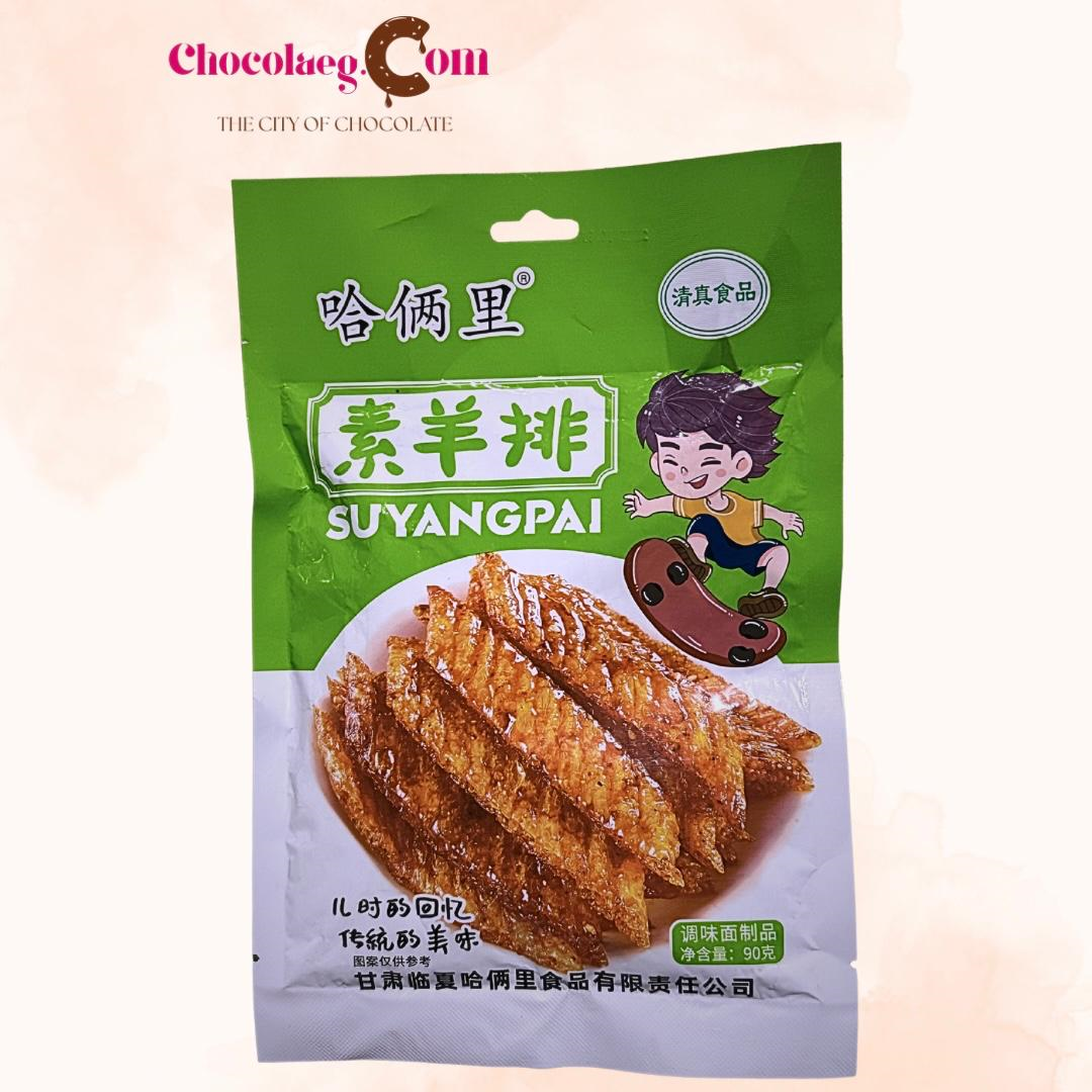 Halali Su Yang Pai (spicy gluten strips), a popular Chinese snack food.