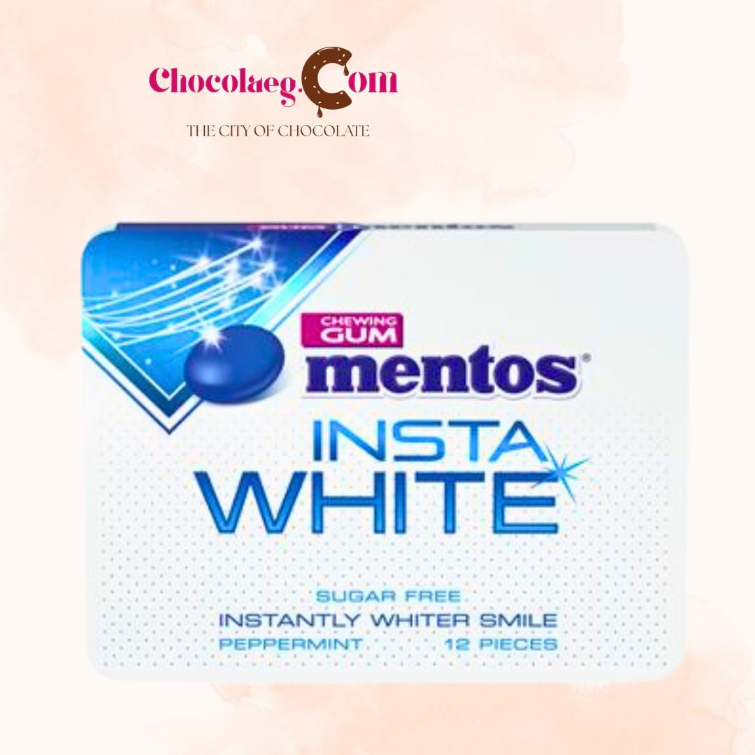 Mentos Insta White Chewing Gum is available in a 17.5 gm blister pack. The sugar-free gum contains the sugar substitute xylitol, which is known for its ability to protect against tooth decay.
