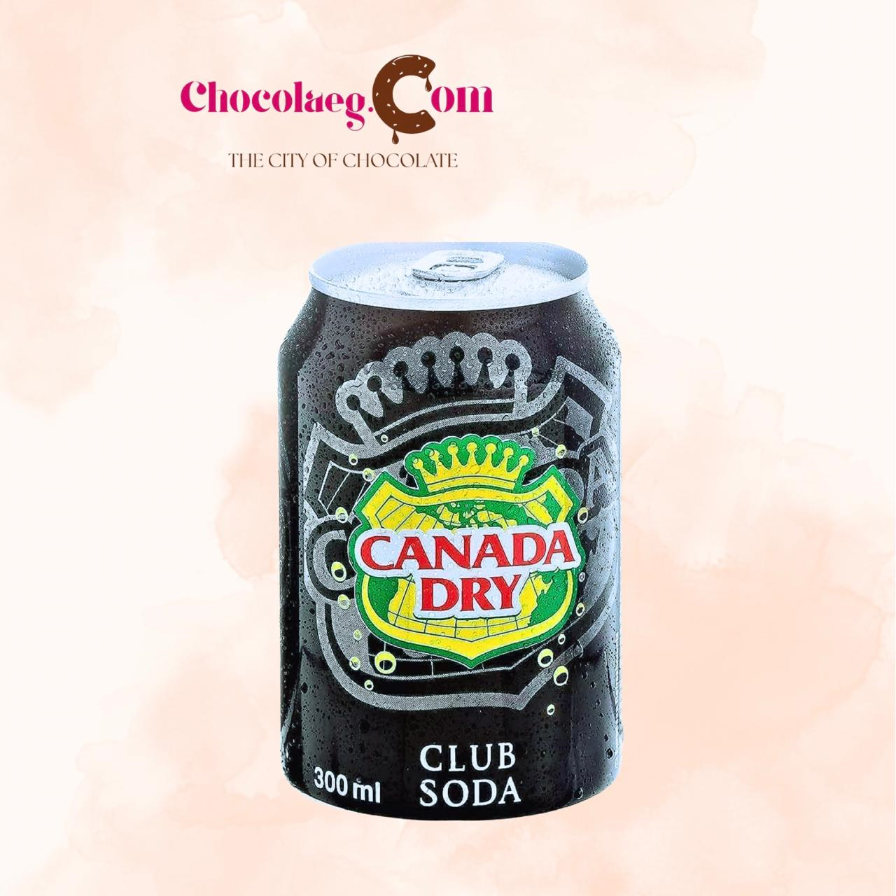Canada Dry Club Soda 300 ml . It is a zero-calorie, caffeine-free beverage with a sparkling and clean taste, making it suitable for cocktails or drinking on its own.
