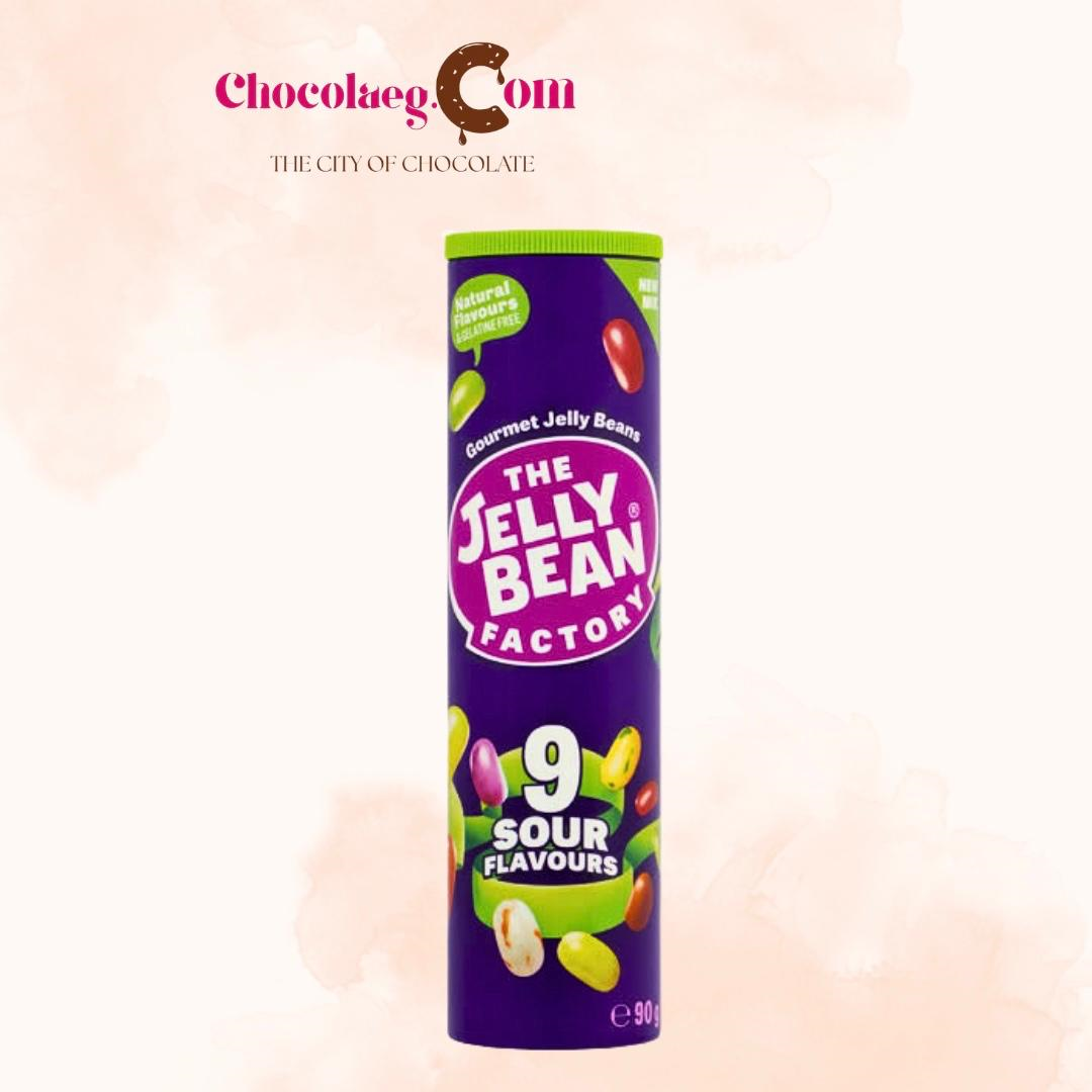 The Jelly Bean Factory 9 Sour Flavours 90g tube contains nine gourmet sour flavors and is made with 100% natural flavors and no artificial colors. The gluten-free and gelatin-free candy is suitable for vegetarians.