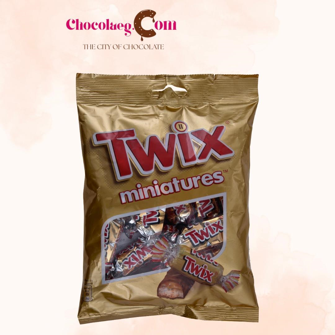 Twix Miniatures are individually wrapped, bite-sized chocolate bars that feature a crunchy cookie center, a layer of chewy caramel, and a coating of milk chocolate – 150 gm