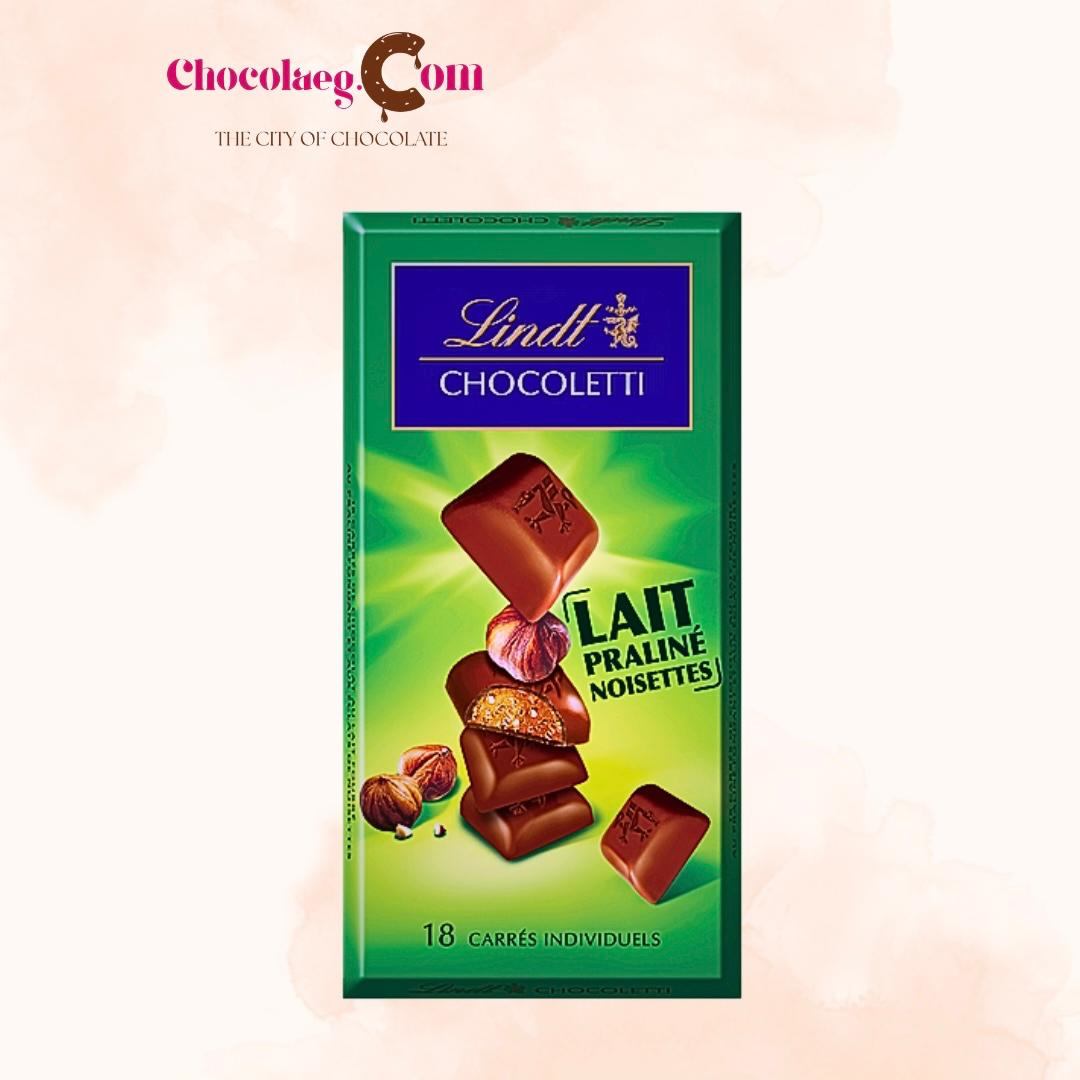 Description : The Lindt Chocoletti range offers irresistible individual squares of milk chocolate filled with a delicious hazelnut praline, perfect for a sweet treat.